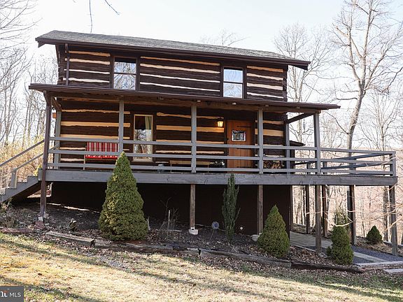 Welcome to the authentic log cabin living experience! This charming 2-bedroom, 2-bathroom, 2-story log home is nestled on a serene 9.15-acre wooded property, offering breathtaking mountain and ridge views. Located in a private and well-maintained wooded subdivision, this home combines the allure of historic charm with modern conveniences, providing a carefree living experience. The front of the house showcases vintage hand-hewn logs sourced from a cabin in Ohio, while the rear addition incorporates logs from a cabin in Virginia, adding to its unique character. Built in 2010, this estimated 1600-square-foot home features insulated walkout basement, ensuring comfortable living on both floors. The basement also offers ample storage space and houses the utilities. As you step outside the basement, a concrete walkway awaits, creating the perfect spot for a hot tub, allowing you to unwind and soak in the tranquil surroundings. The exterior of the property boasts a covered front porch, ideal for relaxing, and a deck that wraps around the side, leading to a covered screen porch where you can enjoy the fresh air while being protected from the elements. Additionally, a small platform in the yard features a fire pit, perfect for gathering with friends and family. For additional storage needs, there is a permitted 10x12 finished shed, constructed separately from the main house. Inside, the interior features beautiful hand-hewn log walls that exude warmth and character. A wood stove adds to the cozy ambiance while providing efficient heating. The custom front door and stained glass windows add a touch of craftsmanship and elegance to the home. Conveniently located approximately 15 minutes away, Moorefield offers a variety of shopping, restaurants, and cafes. If you enjoy skiing and resort activities, West Virginia's ski areas are just 1.5 hours away. Winchester, Virginia, is less than an hour's drive, and Washington D.C. can be reached in under 2.5 hours, making this location ideal for those seeking a peaceful retreat within reasonable proximity to urban amenities. Don't miss out on the opportunity to experience log cabin living with modern comforts. Schedule your tour today and immerse yourself in the charm and tranquility of this exceptional property.