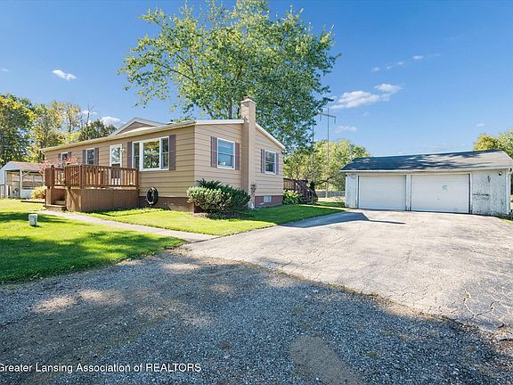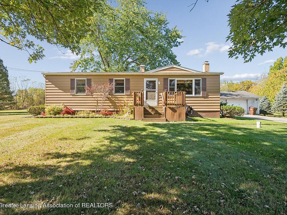 This adorable, well maintained 3 bedroom, 1.5 bath ranch with partially finished basement features a 2.4 acres (double lot combined in 2023), a large deck with hot tub, a barn and 2 car detached garage. The home has had many updates over the past 10-12 years including roof, hot water heater, Wolverine Water purification system, 200 Amp Electrical, furnace, central air, well pump, kitchen cabinetry, carpet, stainless steel appliances and trim. The basement was finished until the well pump leaked. The seller removed the corner of the basement paneling where the well pump was and all the flooring and never put back after replaced the well pump. Just needs some TLC and could be a great living space. In addition, there are RV Hookups at the barn and the property has 2 wells.
