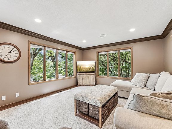 Pride in ownership shines through in the well-maintained rambler on over a 1/2 acre lot at the end of a cul-de-sac in the Oakwood Terrace neighborhood. Updated kitchen includes beech cabinets, granite tops, huge center island, wood floors, and stainless-steel appliances. Living and dining room have large windows providing beautiful panoramic views. This 4-bedroom home offers a master suite with private 3/4 bathroom and walk-in closet plus a second bedroom and full bathroom on the main level. Lower level includes 2 additional bedrooms and another 3/4 bathroom. Relax in front of the gas fireplace in the lower-level family room, watch the game o the outdoor deck TV, or listen to music with the built-in speaker system. 5 garage spaces make this property extra special. There's an attached 2 car garage finished with knotty pine and epoxy floors, a detached 3 car garage with heated floors, plus a tuck under garage/workshop below the attached garage. This is a property you need to see to appreciate.