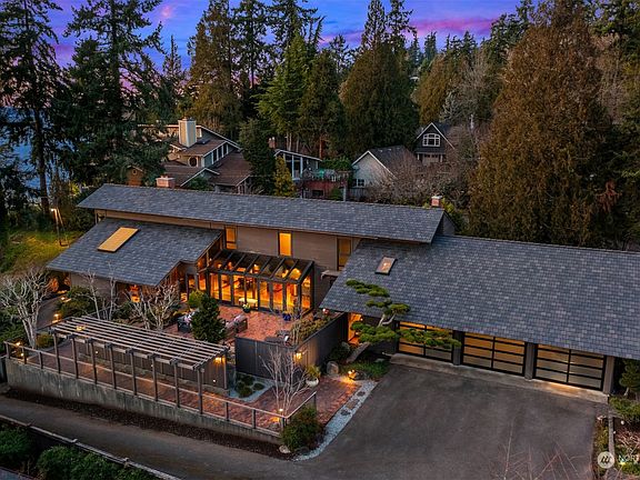Nestled on a serene, private lane, this remarkable mid-century modern home presents an opportunity to own a piece of architectural history. Designed by the acclaimed architect Gene Zema, this gem has been thoughtfully updated to blend modern comfort with timeless design. Situated on a generous flat lot of over half an acre, the property boasts a lush NW garden and captivating views of Lake Washington, just minutes from the vibrant heart of downtown Bellevue. The property includes an attached MIL apartment, offering flexibility for guests, multigenerational living, or additional rental income. With its prime location, exceptional privacy, and architectural significance, it's an opportunity to own a piece of the PNW's architectural heritage.