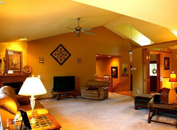 This amazing family home sits 4.5 acres with landscaped grounds and tremendous valley views. Deck extends length of home giving you a private deck for your am coffee and gorgeous sunsets like you see in magazines! Inside features: a granite gourmet kitchen, refin oak hdwds, w/vaulted LR & fpl, Master on Main, 2nd bedroom & den are also on main. Party in media rm & wet bar. Tinker in finished, heated 30x50 shop & ofc with room for toys!