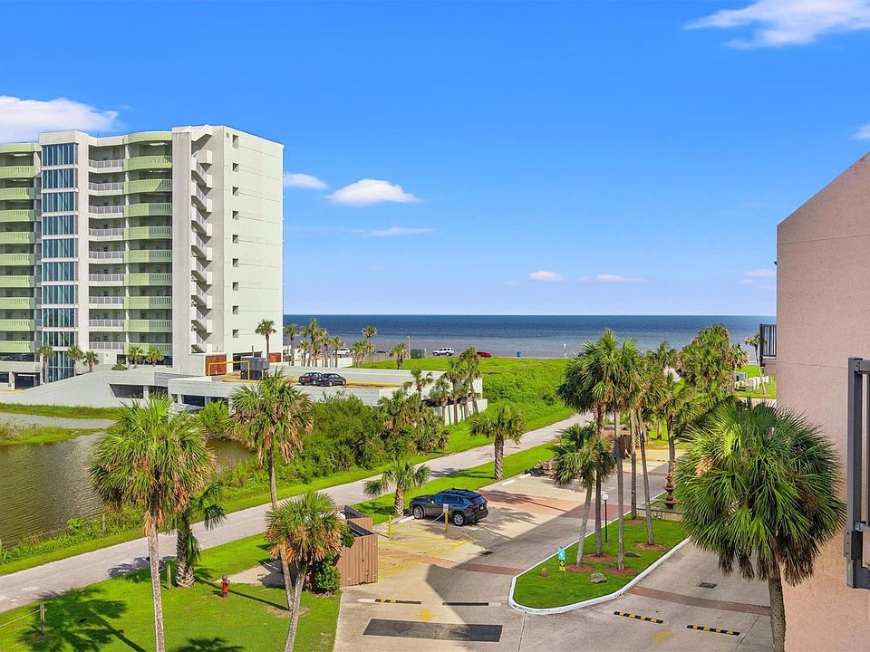 This beachside condo retreat is a great successful short term rental! This beautiful one bedroom / one bath sleeps 5, with a single bed in the alcove and pull-out couch. Unit faces east, ensuring mesmerizing sunrises over the Gulf. Wood-style tile flooring. Plenty of kitchen storage, which includes granite countertops and a large breakfast bar. Large bathroom with oversized step-in shower. Surrounded by lush tropical landscaping, this property creates a serene ambiance complemented by amenities such as 3 pools, a hot tub, fitness center, and a convenient pet shower area. Located just across the street from the beach and near the iconic Pleasure Pier, indulge in a myriad of activities and attractions including amusement rides, world-class dining, and boutique shopping.