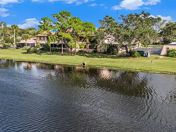 Welcome to this rare top-floor waterfront condo overlooking Seminole Bypass Canal, Long Bayou Watershed, offering 2 bedrooms, 2 baths, and 1,250 sq ft of well-maintained living space. This loft-style unit provides added privacy and abundant storage, including attic space, a screened and glass-enclosed balcony with its own storage closet, exterior storage under the covered parking space, and even a pulley system bike lift over the stairs. Inside, you’ll find plantation shutters, LVP flooring, fresh interior paint (2022), new lights and ceiling fans, crown molding, and an in-unit GE stack laundry. The kitchen features a Bosch dishwasher, KitchenAid double oven range, and a mix of black and stainless-steel appliances with Formica counters. Major updates include a new water heater (2022), HVAC (2011), new electrical panel, new Bath Fitter soaking tub, and PGT double-pane hurricane-impact windows and sliders. The condo fee covers expanded cable and internet, water, sewer, trash, landscaping, building insurance, and exterior maintenance including the tile roof. You’ll also enjoy access to a solar-heated pool, clubhouse with solar panels, and tennis/pickleball courts — leaving you responsible only for the electric bill. With no age restrictions, allowance for two pets (dogs, cats, or birds), and no storm damage from last year’s hurricanes, this second-floor unit offers peace of mind and a low-maintenance lifestyle. Best of all, no second-floor 2-bedroom units have sold here in the past two years, making this a rare opportunity to own one of these highly desirable waterfront homes with unmatched storage and amenities.