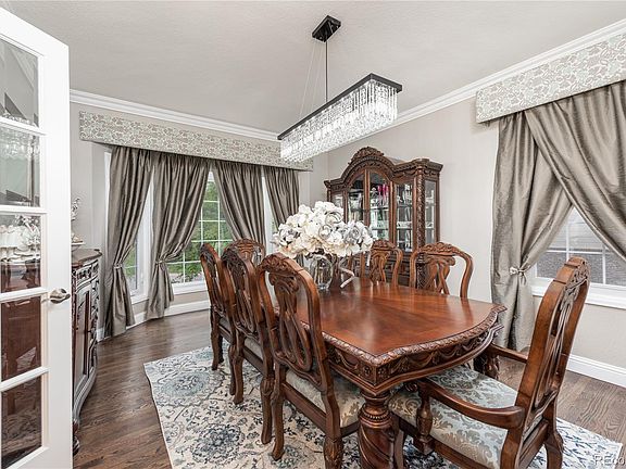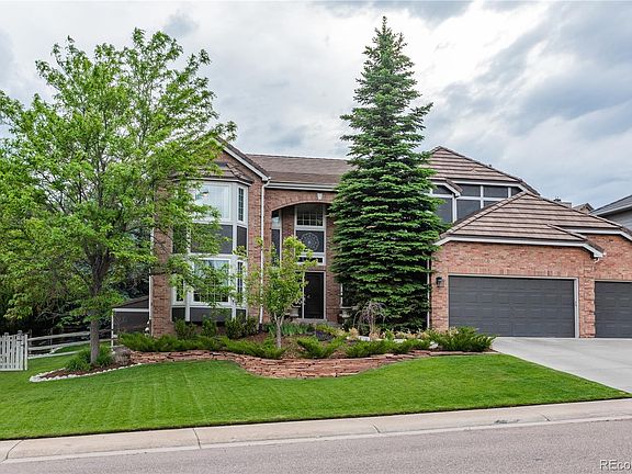 Nestled amidst majestic pines on a private, beautifully landscaped lot, this gorgeous 2-story offers impeccable quality and design inside and out. The home features an absolute "WOW" backyard entertaining space that includes an expansive covered patio, separate pergola and hot tub with custom stonework and timber. Enhanced by extensive remodeling, the interior of the home is sheer luxury with a desirable, open floor plan that lends itself perfectly to entertaining. From the moment you approach the home you will be taken by its beauty and curb presence. The 2-story foyer draws you in with a graceful curved staircase with iron railings and rich timber floors refinished in dark walnut that extend throughout the entire main level. Classic elegance in the formal dining room with a custom light fixture, crown molding, and bay window. The beautiful 2-story great room features a wall of windows, timber lined bar and a massive floor to ceiling fireplace. The remodeled kitchen offers expansive slab granite countertops, white custom cabinetry, pantry, and high-end stainless appliances. A main floor study and remodeled full bath complete the main level. Upstairs you will find 4 bedrooms, 2 baths including the master suite with vaulted ceilings, sitting area, and dual walk-in closets. The sparkling white master bath dazzles with marble tile, granite countertops, dual vanities, underfloor heating, stand-alone tub and frameless shower. The finished lower level hosts a rec room with a timber lap accent wall, wet bar with wine fridge and pool table included. There is also a guest bedroom, ¾ bath and large storage area with built-in shelving. Other highlights include new carpet, all new double pane windows, all new internal and external doors, new water heater and new humidifier. Ridgeview at Lone Tree is a popular golf community close to Lincoln Light Rail Station, Lone Tree Rec Center and miles of hiking and biking trials. Minutes from DTC & Park Meadows.