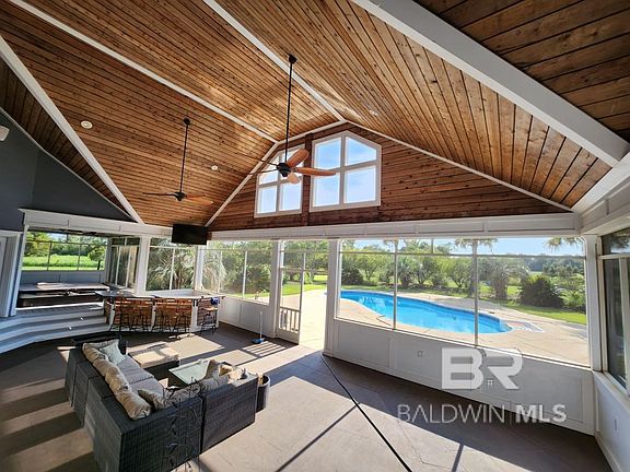 Secluded Custom Estate on 7.5 Acres – Minutes from Foley & Gulf ShoresDiscover the perfect blend of privacy, space, and luxury with this custom-built home, ideally located just minutes from Foley and only 15 minutes from the white sands of Gulf Shores.This impressive property features a grand open-concept design highlighted by a two-story great room spacious enough to comfortably entertain 30 guests. Enjoy the outdoors year-round on the 800 sq. ft. screened-in back porch, complete with a vaulted cedar ceiling, overlooking your private acreage.A six-car detached garage (1,200 sq. ft.) provides plenty of room for vehicles, storage, or a workshop, with a second-floor loft area ready to be finished to suit your needs.Wake up to uninterrupted sunrise views, and in the evenings, unwind under crystal-clear, star-filled skies—a true retreat from the hustle and bustle of town.Because the property is unzoned, it offers endless possibilities: operate a Bed & Breakfast, create a clubhouse for an RV resort, or enjoy it as your own private estate.The in-ground swimming pool is ready for a new liner.Additional Details: • Approximately $115,000 below current market value • Square footage is approximate and should be verified by buyer • Home is being sold As Is, as updates continue until a viable offer is accepted. Buyer to verify all information during due diligence.