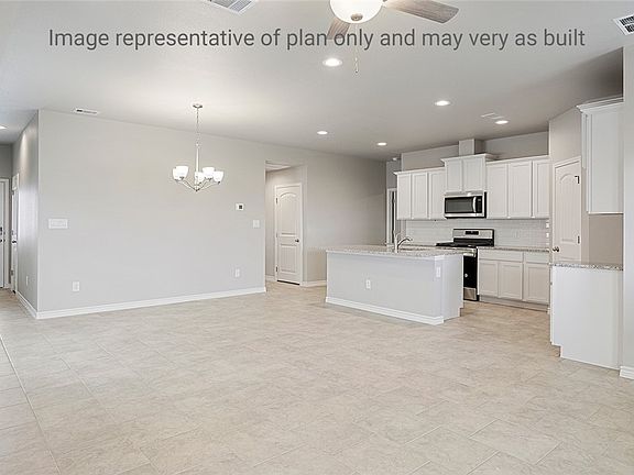 The Camden plan is a single-story, 3-bedroom, 2-bathroom home featuring approximately 1,501 square feet of living space. The entry flows into the large combined dining and living area, which opens into the center kitchen. The kitchen includes a breakfast island, quartz countertops, stainless steel appliances, and a separate pantry. Secondary bedrooms and bath are located off the main living area. Bedroom 1 features a sloped ceiling and an attractive bathroom with a spacious walk-in closet. The standard rear-covered patio is located off the living room. You’ll enjoy added security in your new D.R. Horton home with our Home is Connected features. With D.R. Horton's simple buying process and ten-year limited warranty, there's no reason to wait! (Prices, plans, dimensions, specifications, features, incentives, and availability are subject to change without notice obligation.)