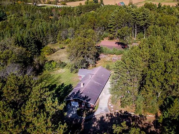 72 wooded acres of privacy! Excellent frontage on Highway 54. 3 Bedroom, 2 Bath home with 1st floor laundry, pantry, wood fireplace and office area. Geothermal heating in home. Extra 35' x 24' heated garage & a 50' x 60' storage building. Rolling wooded hills await you! Zoned Rural Limited. . Home Warranty Included.