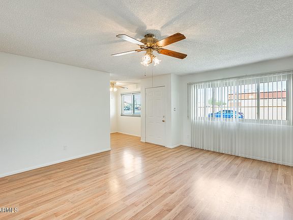 Welcome to this beautifully maintained home in a vibrant 55+ community! Conveniently located near the 101, this property provides easy access to shopping, dining, entertainment, and the Glendale Arena for sports and events. The home has been professionally painted and is move-in ready. The inviting living space flows into a cozy dining area and a kitchen with a built-in pantry. Direct access to the garage from the kitchen makes unloading groceries a breeze. Both bedrooms are generously sized, with plenty of room to relax. Step outside to a spacious covered back patio, ideal for enjoying Arizona's stunning sunsets. This home offers comfort, convenience, and endless possibilities!