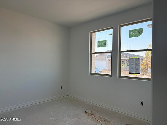 This bright single-story home offers 1,577 sq. ft., 3 bedrooms, 2 baths, and a 2-car garage. The charming Modern Desert exterior features a paver driveway. Inside, enjoy an open kitchen with a large island, walk-in pantry, and stainless steel appliances. The Roosevelt Collection includes 42'' Sarsaparilla cabinets, quartz kitchen countertops, white horizontal backsplash, and pendant light prewires. Additional features: plank tile flooring, 8' doors, washer/dryer, soft water loop, and 2'' blinds. A 4-panel sliding glass door opens to a covered patio for indoor-outdoor living. Great location near dining, parks, and freeways.