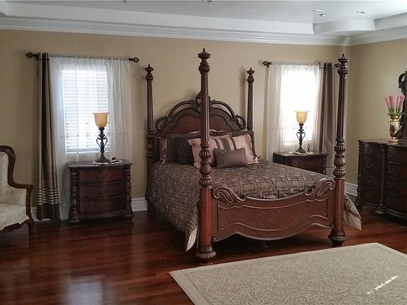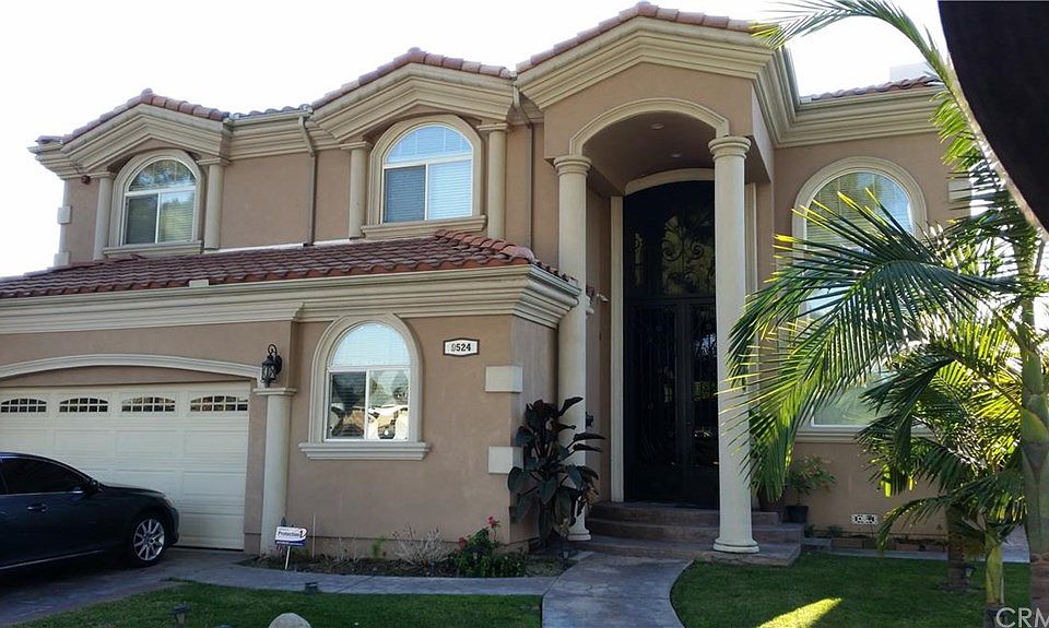 Magnificent Mediterranean style home, 2-story newer construction built in 2006 in super North East Downey location. Stately 2-story ceilings in the entry and living room. 2 out 5 bedrooms are suites with their own bathrooms. One bedroom downstairs and a full restroom. Office leading to the living room. Dry bar open to family room. Gourmet kitchen, built in appliances, pantry, granite counters, island, great cabinet space - Kitchen opens to family room. Family room opens to spacious patio and backyard. Formal dining room. Direct access from garage to family room. Excellent floor plan, abundant natural light, tremendous detail to recessed ceilings. Information deemed reliable but not verified. Property occupied. No solicitation. Commission is 2% to agents representing buyers. Showing by appointments only. Se Habla Espanol. Amenities: 3 Fireplace, Central AC, Security System, Mahogany Wood Floors, Appliances Included, Patio, Central Heating, Fenced Yard, Garage, Jetted Bathtub, Sprinkler System, Marble Floors and Travertine tile in the restrooms.