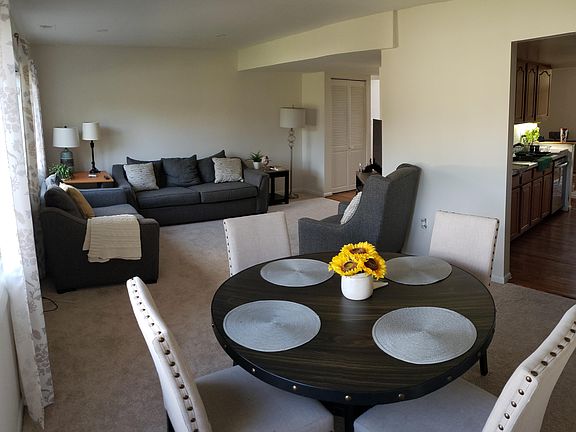 - Interior: Spread out over three floors, including a finished, walk-out basement, this home has new stainless steel appliances and hardwood floors in the kitchen and dining areas. The remaining areas are comfortably carpeted. 3 bedrooms + 2 bathrooms on top floor, kitchen + dining + living room + 0.5 bathroom on main floor, 1 bedroom + 1 bathroom + laundry room + flex space in walkout basement