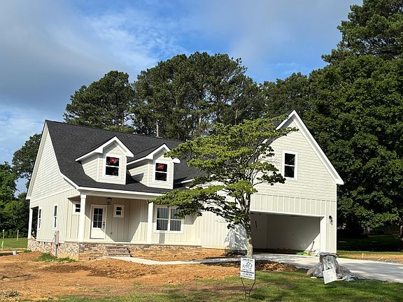 The exterior features covered front and back porches, ideal for enjoying morning coffee or evening breezes. A spacious two-car garage provides ample parking and storage.