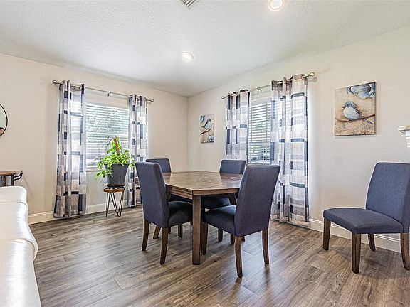 STUNNING REMODELED HOME, with over $40,000 in recent upgrades, is MOVE-IN READY! Welcome to this beautifully updated 2,065 sq. ft. home in the highly desirable 55+ Tampa Bay Golf & Country Club, offering 3 bedrooms, PLUS office/den that can double as a 4th bedroom, 2 baths and Extended lanai. From the moment you arrive, you’ll be impressed by the curb appeal—lush, manicured landscaping, epoxy-coated driveway and walkway, and a screened front entry that invites warm Florida cross breezes. Once inside, you will be impressed with the soaring vaulted ceilings, freshly painted interiors, new lighting, Plant shelves and abundant natural light from large double windows. The Light, Bright and OPEN formal living and dining areas are perfect for entertaining, with chairrail, tall baseboards and new LVP (Luxury Vinyl Plank) flooring flows throughout the main living spaces and office. The heart of the home is the gourmet kitchen, featuring GLEAMING countertops, undermount sink, all-new cabinetry with designer hardware, a center island, breakfast bar, and cozy dinette overlooking the sideyard lawn. The kitchen opens directly to the great room, where built-in custom pantry closet, arches, and niches add custom character. The split-bedroom layout ensures privacy: the spacious primary suite boasts an enormous walk-in closet and a renovated bath with all new cabinets and counter-topped vanities, and a large walk-in shower with seat and grab bars. Secondary bedrooms are tucked away on the opposite side with their own updated bath. The den/office with double doors can easily serve as a 4th bedroom, guest room, or hobby space. The interior laundry room includes upper storage cabinets, and the garage features a painted floor and room for extra storage. Relax, REST EASY or entertain outdoors on the extended screened lanai, complete with a freshly resurfaced acrylic stone-chip floor, vaulted screen roof, and plenty of room for outdoor dining or gatherings. Living in TBGCC means enjoying a true RESORT Lifestyle in a man-guard gated community just off I-75 with easy access to Tampa, Ocala, Orlando, and the Gulf beaches. RESIDENT OWNED Amenities include: 2 swimming pools (one heated) RESORT style with fountains and lap lanes, the other adult only pool (unheated); Fitness center, Poker room & billiards room in Activities center; Award-winning clubhouse with full-service restaurant, pub/grille, and pro shop, Library, card rooms and banquet facilities; Championship golf (memberships available or pay-as-you-play), Pickleball, Tennis, bocce, cornhole, shuffleboard, onsite entertainment and travel excursions available; Dog parks and scenic ponds; Planned activities, dances, dinner shows, day trips, bingo, bunco, card clubs, and more! This home offers everything you’ve been looking for—modern updates, spacious design, and an active community lifestyle! 2 Seater, 2017 CLUB CAR golfcart,with all new batteries, is negotiable. CALL today to schedule your private showing and see why Tampa Bay Golf & Country Club IS the perfect place to BE!