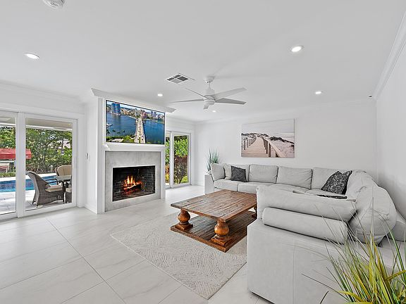 Private dockWaterfront pool homeCoastal modern designPrivate oasisQuartz countertopsNewly resurfaced poolHigh-end finishes