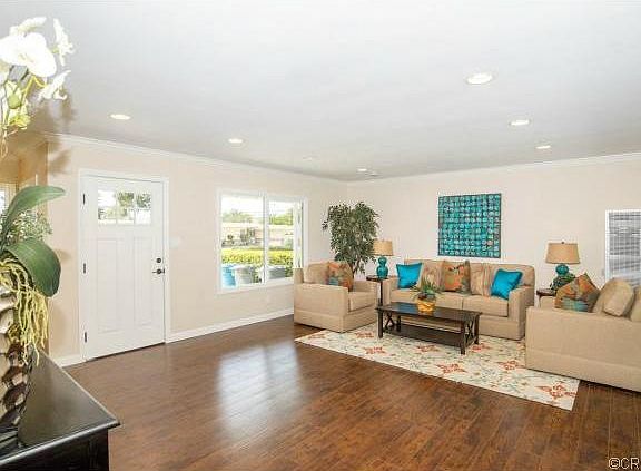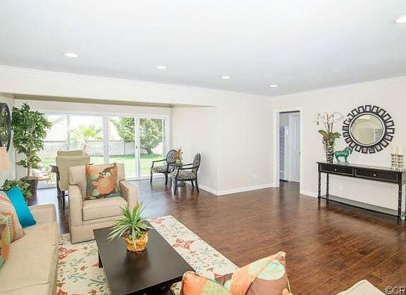 You'll feel right at home when you pull up to this quaint Downey home with beautiful curb appeal. This charming remodeled 2 bedroom, 1 bath home is perfect for a first time home buyer or growing family. The galley style kitchen boasts sparkling granite counter tops, brand new cream colored wood cabinets and new stainless appliances. There are all new windows and doors, new laminate wood flooring, neutral paint and crown moulding throughout the open floor plan. The bathroom has a new vanity with granite counter top, new fixtures and custom tile work. Enjoy views of the landscaped backyard from the sitting area off the living room. Be sure to show your clients this home. They will definitely fall in love!