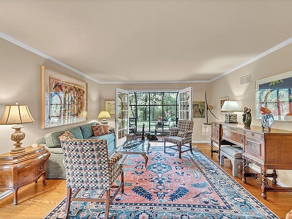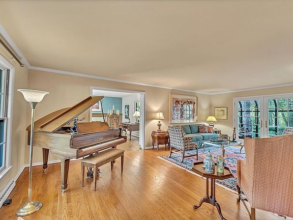 Fred Miller-built home on over an acre on a quiet street. Gracious entry leads to charming living room which features french doors to 2 season room; formal dining room with hardwood floors and crown moldings; den/study with natural fireplace and built-in bookcases. Handsome family room also boasts built-ins; eat-in kitchen offers stainless steel appliances, built in buffet, double ovens, granite counters, cabinets galore and sliding doors to oversized brick patio. Main floor laundry with pantry. Primary en-suite upstairs along with 3 bedrooms with closets galore! Many rooms with hardwood floors. The beautifully landscaped backyard features a treehouse! This one has it all!