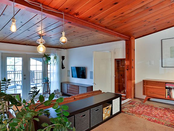 Warm and welcoming describes this chic mountain home tucked in the hills of Tujunga, a perfect blend of modern amenities with rustic, natural character. The remodeled kitchen features Samsung induction range, European-style dishwasher, butcher block countertops and farmhouse sink. Although public records reflect 3 bedrooms, the main house has 2 beds and 1 bath - perhaps the entry was a bedroom at one time. There is a separate studio, permitted as a sewing room, which is an ideal home office or guest quarters as there is also an adjacent ¾ bath. Additional perks include in-wall mounted surround sound speakers, knotty pine accents, newer windows, copper plumbing (for the most part), and skylight. The 15k square foot lot is landscaped with mature drought-tolerant plants. Nature enthusiasts will appreciate the abundance of outdoor entertaining spaces including an expansive Trex deck offering sweeping canyon views. This idyllic artist's retreat is not to be missed.