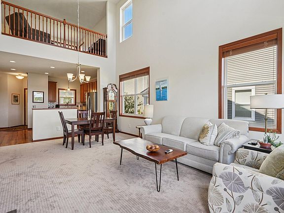 Located in a desirable neighborhood of more expensive homes, this end unit townhouse has a main floor primary suite and a soaring, lofted 2 story living room. The large windows provide an abundance of natural light and is east facing. The deck has a line of trees behind it providing a lovely view. Welcome your guests from your private front porch! The lower level is unfinished and walks out to a cement patio. A full level of space for storage or ready to finish. Conveniently located half a block from this home, the complex has its own swimming pool there is nature trail, large playground and a ball field for your enjoyment. Lifetime fitness and the Arboretum are very close. It's a short walk to Avienda Village, a fabulous retail, restaurant, recreation and entertainment complex now under construction. centrally located between the communities of Eden Prairie, Excelsior, Chaska and Victoria, it promises fun for everyone.