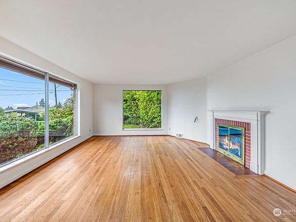 Your dreams can become reality with this charming midcentury in highly desired North Beach! This delightful single-story home with versatile basement and 4800+ sf lot offers endless possibilities for customization. The bright and spacious main floor features a formal entry and stunning living room with a wood-burning fireplace and partial views of Puget Sound. A formal dining room, eat-in kitchen, full bath and two bedrooms complete the level. The partially finished basement with a sizable rec room and second fireplace awaits your design creativity. Utilize the extra deep, attached garage and ample off-street parking. Enjoy private, gated beach access as an associate member of the North Beach Club!