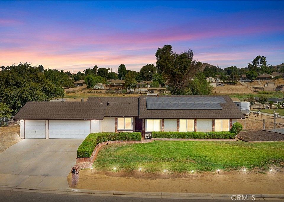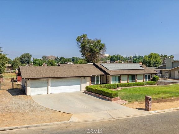 This is a fantastic, single story, 4 bed, 2 bath home that is also a HORSE property! The home features solar panels, is on a flat lot, does not have neighbors against the backyard, and comes with horse corrals. Can you believe it, a 3 car garage and both bathrooms have been upgraded! There is also a very nice and cozy fireplace in the family room. The lot is SO BIG that there is room for parking your RV, more vehicles, boats, trailers and an ADU! This one is HOT!