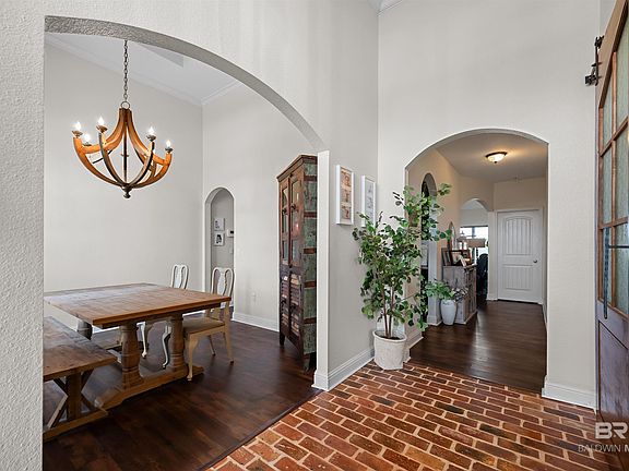 Welcome to this beautifully designed 3-bedroom, 2-bath home offering 2,103 square feet of thoughtfully planned living space. From the moment you step through the custom split-brick floor entryway, you’ll be drawn in by the attention to detail and the warmth this home exudes. A pair of custom sliding wood-panel glass doors leads into the bonus room, and adjacent to it, you’ll find a formal dining room. The home features a split floor plan offering added privacy with generously sized bedrooms on opposite wings. At the heart of the home is an open-concept kitchen and living area with soaring vaulted ceilings and stylish industrial vinyl flooring. The kitchen boasts granite countertops, a powered island with built-in storage, and ample space for both cooking and gathering. Step outside to your covered back patio, where a charming bed swing invites you to relax and take in the tranquil views. The backyard overlooks a neighborhood pond, offering a peaceful and picturesque setting. Call your favorite agent today to view this beautiful home. It won't last long! Buyer to verify all information during due diligence.