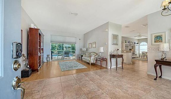 Welcome to 9528 Hawksmoor Lane, located in the highly sought-after gated community of Stoneybrook Estates on Palmer Ranch. This spacious home features over 2,000 sq. ft. of living space, a two-car garage, and a crystal-clear pool recently resurfaced. It is loaded with curb appeal, from the pavered driveway to the pavered pool deck. As you enter the home, you are greeted with a serene view of the pool, high ceilings, and a split floor plan. The updated kitchen is a delight with solid wood cabinets, newer appliances, and granite countertops, and overlooks the family room. The cozy breakfast nook has custom window shades that, when raised, highlight the beautiful pool view and there is a dining area that is currently functioning as added living space. The huge master suite is an absolute retreat, flowing with natural light and features a sliding glass door out onto the pool area, an ensuite with two sinks, a garden tub, a glassed-in shower, and an ample walk-in closet. The two additional bedrooms are on the opposite side of the home, allowing for privacy for both owner and guests, and the guest bath is adjacent to the guest bedrooms. The home is equipped with two alarm systems, has accordion shades on all windows except bathrooms, and has a separate laundry room and a two-car attached garage. The pool deck area has been recently updated with pavers that match the front driveway. Membership in the semi-private Stonebrook Golf and Country Club is not required or offered in this section of the community. However, non-members may dine at the clubhouse. Stoneybrook at Palmer Ranch is a gated community with mature landscaping and well-kept homes, conveniently located to schools, shopping, Costco, the YMCA, Pinebrook School for the gifted, and the Legacy Trail, which offers walking and biking access. Best of all, you are less than 8 miles from the sugary sandy beaches of Siesta Key, the village shops, and restaurants. In less than 25 minutes, you can be downtown Sarasota to experience the cultural and culinary offerings that Sarasota is known for. Don't miss this home - call to see it today.