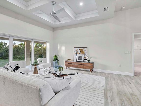 Luxury finishesQuartz countertopsElegant coffered ceilingsAdditional storage closetSpacious primary suitePorcelain plank flooringImpact windows