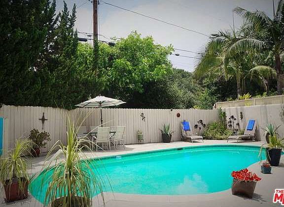 Located on a quiet, beautifully tree-lined street and highly desirable location in Tujunga, this well maintained Pool/Spa Home offers 3 bedrooms plus a den with a cozy wood-burning stove and 2 baths. All fenced in large back yard is perfect for entertainment with calming hill side views and good size sparkling pool and spa. From the living room with fireplace you are entering the large all tiled covered patio with access to the master and den. Newer hard wood floors throughout the home. Nice private Master Bed Room with views over lush yard with direct access to patio. Charming light filled kitchen with an eat-in kitchen and built in cabinets. Attached 2 car garage with drive way.