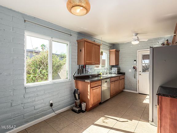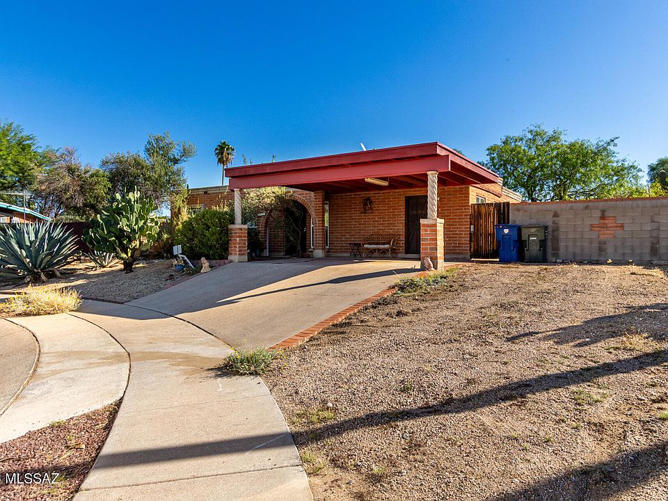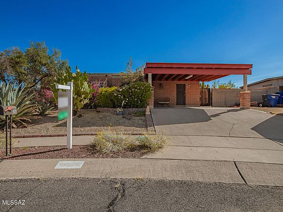 Welcome to this charming Braewood Terrace home, tucked in a quiet cul-de-sac with no HOA. Move-in ready with stainless steel appliances, upgraded windows, new laminate flooring, and a spacious den/bonus room for work or play. Enjoy modern bathrooms, a well-equipped kitchen, and seamless indoor-outdoor flow for entertaining.Relax under the covered patio or in the large backyard with mature pomegranate trees, a 1300-gallon rain barrel, flower beds for gardeners, and space for RV parking. Major updates include a new water heater (2021), roof recoated (2024), fascia replacement (2025), and gutters. A large shed provides extra storage.Conveniently located near Davis-Monthan AFB, shopping, and dining. All appliances convey with a full-price offer, plus a 1-year home warranty included.