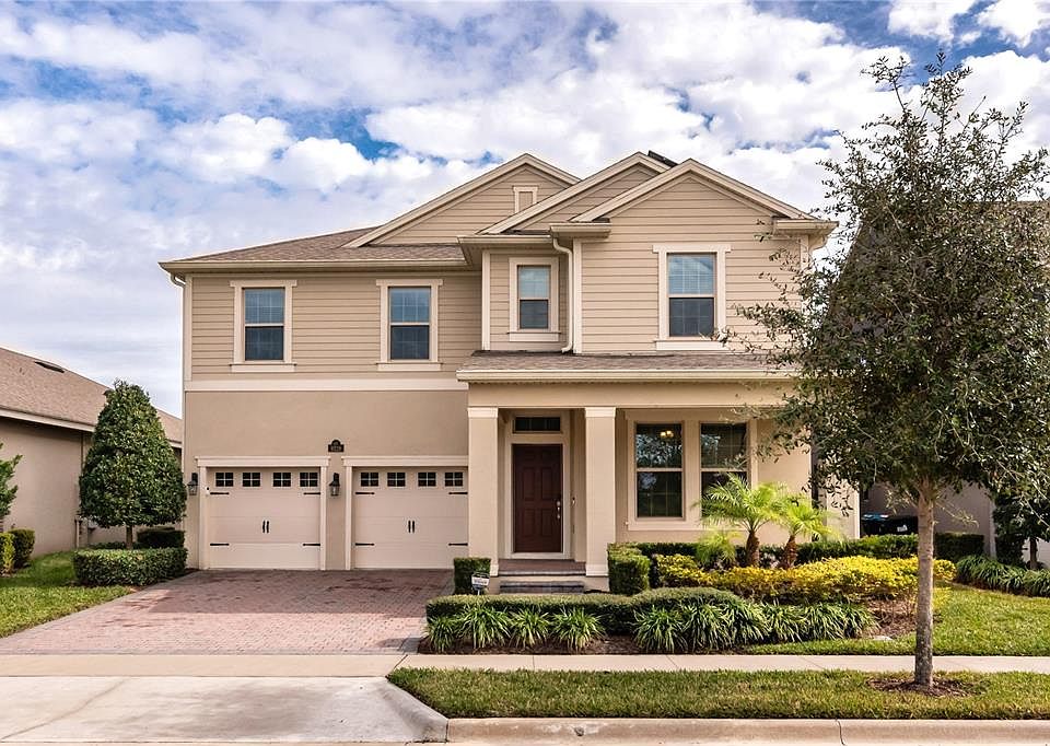 Expect to be impressed with this beautifully appointed 5BR home in the desirable Waterleigh community. Room for everyone and everything! Notable highlights: (1) “Smart” and secure home to make life convenient, featuring Nest thermostat, fingerprint or code accessed front door lock, wall mounted security system, smart water heater, smart garage door openers, Ring doorbell camera, and garage camera w/access code entry, (2) High quality solar panels to help reduce your electric bill (being paid off by sellers at closing), (3) Gourmet style kitchen with “wow” factor: quartz counters, island w/breakfast bar, tile backsplash, stainless appliances (including Smart LG fridge & built-in oven/micro) and butler’s pantry, (4) custom built entertainment center in living room that will fit a 75” TV, (4) an additional bedroom suite (perfect for guest or live-in relative), (6) Expansive garage storage: hanging racks and custom built cabinetry, and (7) two floor block construction maintains the temperature inside the home regardless of season while the double pane windows and installed gutters gives you peace of mind with any weather that comes through. Layout features common living space, half bath and one flex room (potential BR 5) on ground floor, creating an overall great gathering space, with 4 bedrooms/3 full baths upstairs, all centered around a HUGE bonus room – ideal for a secondary entertainment spot but versatile to arrange to suit your needs. Primary suite boasts a bedroom that’s large enough for a sitting area, ensuite bath with oversized, dual sink, quartz topped vanity, and tub w/separate shower. You’ll love the CUSTOM designed closet, with plenty of shelving, drawers and hanging space to provide attractive and efficient storage space. All secondary bedrooms are large enough to accommodadate desks – ideal for those working from or studying at home. This home shines not only on the inside, but on the outside, too. It’s meticulously landscaped all around, and you’ll appreciate having both front and back covered, paver porches. And the backyard fencing is a plus if you have furry friends! Waterleigh is a wonderful community of contemporary homes. Here you have access to all the amenities from each phase of development (3 resort pools, fitness centers, tennis, play areas, walking paths, minigolf, lawn maintenance included with HOA, etc.). There’s a Publix in the community – a great convenience. You’re only about 2 miles to SR 429 with easy access to Disney property. And you’re in an excellent school district with the elementary school and Kiddie Academy daycare just a short 5 minute walk from your home. You’ll love living here. Come see all that makes this home so special!