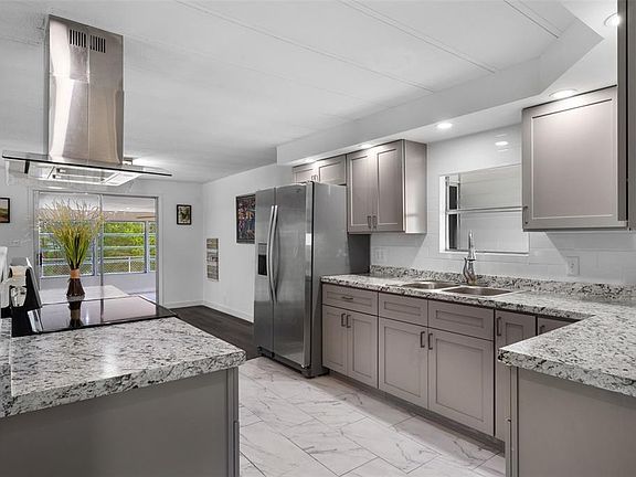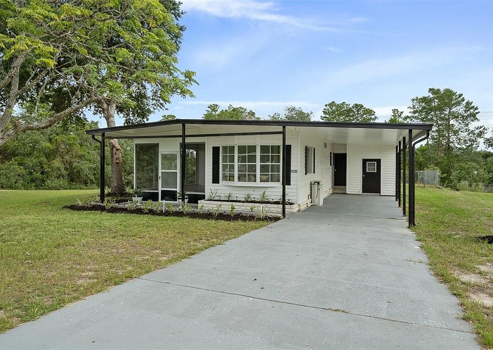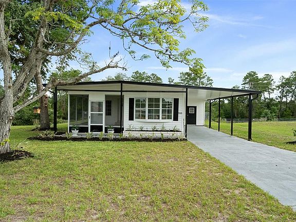 OWN YOUR LAND. COMPLETLY RENOVATED 2 BEDROOM HOME IN BROOKRIDGE. Brookridge is a masterfully planned 55+ manufactured home community located on Florida's nature coast, in the Hernando County town of Brooksville. This secure (24/7 gated access) Florida golf community features an 18-hole, par-72 golf course winding throughout the landscape. Brookridge is a deed-restricted community with all lots individually owned. All owners belong to the Brookridge Community Home Owners Association where fees are kept to a consistently low level (currently $48 monthly for this lot). Community features include golf course, community pool, guard gate and more. This home has been renovated to include fresh paint on the interior and exterior, new luxury plan vinyl flooring and renovated bathrooms. The kitchen is show stopping with granite counter tops, large island and upgraded cabinets. The home includes 1070 sf of living area AND there is a huge 412 sf enclosed lanai to offer additional living space. This home also includes a front porch. carport and utility shed. This home is located on a quiet street on an oversized lot that backs to a wooded area.