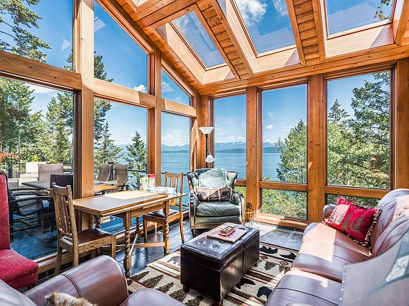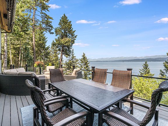 Perched above the sparkling waters of Flathead Lake, this extraordinary luxury estate offers sweeping views of the Swan Mountains & into Glacier National Park. Set on 2.67 private acres, on two lots with 251 ft. of pristine lake frontage, this property blends elegance, functionality, and Montana’s natural beauty. Every detail of this home has been thoughtfully enhanced with premium upgrades. A custom-designed funicular provides seamless access for all ages down to the water’s edge, where a beautifully upgraded dock system awaits, complete with a new hydraulic boat lift & a cantilever double PWC lift with interior catwalk. You will also find a mermaid pond at the water's edge. A charming nature pathway winds through the property, offering a scenic walk to the water. Outdoor living is unmatched with multiple sitting areas designed to take in the views, a cozy firepit for evening gatherings, and expansive decks-completely replaced and upgraded with glass railings to preserve the view. This home offers nearly 4,000 square feet of refined living space, including 5 bedrooms and 6 bathrooms, blending comfort and elegance with room for family and friends. The great room centers around a dramatic floor-to-ceiling river rock fireplace, with soaring vaulted ceilings that create a sense of grandeur and openness. The sunroom is a fan favorite among guests that have enjoyed it over the years, capturing year-round light and lake vistas. Wildlife carvings, including bears etched into the floor tiles, lend a bespoke, artistic touch that celebrates Montana’s wilderness spirit. Recent investments include a new HVAC system, boiler, furnace, paint, window treatments, two 24kW backup generators, and starlink high speed internet. A spacious attached triple garage provides convenience, while the separate heated shop offers ample space to store your boat, recreational gear, and seasonal toys. Fully equipped with a half bathroom, utility sink, and its own washer and dryer, the shop is designed with both functionality and comfort in mind—ideal for lake days, projects, or extended stays. Whether you're savoring the tranquil mountain vistas from the upper terrace, heading out for a day on the water, or simply unwinding in the serenity of your surroundings, this extraordinary Flathead Lake estate offers an unmatched retreat in the heart of Big Sky Country. This property is accessible year-round.