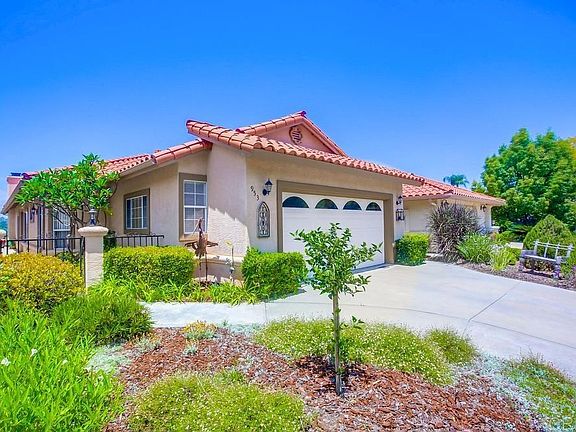 Located in East Ridge, Fallbrook’s most desirable senior living gated community, this beautiful home is top of the grade with attention to detail and meticulously cared for. All on one story, as you arrive, you are greeted by the scents and sights of flowering rose vines and by many varieties of flowering mature plants that surround the home. The handsome entry leads to the spacious living room with a fireplace with raised hearth and access to the broad deck with no home behind and miles of distant views of the hills and mountains to the west. Of note are the stunning wide plank bamboo floors and high ceilings, adding luxury throughout the area and much of the home. The kitchen is a gourmet cook’s delight with high end stainless steel appliances, quartz countertops, travertine backsplashes, copious wood cabinetry, views and its own charming, casual dining area. With its graciously flowing floor plan, the wide hallway leads to an attractive office or den, a beautiful, spacious primary bedroom with a large walk-in closet and extensive modern bathroom, plus a charming guest bedroom with ensuite bathroom, as well as a fully equipped indoor laundry room. There is an oversized fully finished two car garage with lots of built-in cabinets and a work bench, ideal for the hobbyist. Residents of East Ridge enjoy many amenities including a heated pool and spa, clubhouse with billiards, walking trails, pickleball, bocce ball, putting green, tennis courts, community garden plots, RV lot, and many social activities. This special home will amaze you with its extraordinary beauty, its topnotch turnkey condition, and delight you with its welcome-home appeal to embrace a remarkable life style.