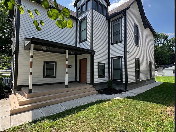 Imagine coming home to 953 English Avenue, a meticulously renovated two-story residence in the heart of historic Fountain Square. Just minutes from downtown Indianapolis and Lucas Oil Stadium, this striking four-bedroom, three-bath home sits on a verdant, green lot and is bright, open living space designed for both comfort and style. Step inside to discover a welcoming foyer that leads past a grand staircase to a family room bathed in natural light from extra-large windows. A dual-sided fireplace-its concrete finish unpainted for a modern contrast-anchors the main floor and invites you to imagine cozy evenings shared with friends. Off the living room, a versatile bedroom awaits: perfect as a quiet home office or a private guest suite. The heart of the home is the gourmet kitchen, fully equipped with stainless steel appliances: a gas range, refrigerator with ice maker, dishwasher, and built-in microwave. An oversized island topped with quartz countertops provides ample workspace and a gathering spot for casual meals. Just beyond, a dedicated laundry room keeps household tasks out of sight and organized. Ascend to the second floor, where soaring 12-foot ceilings enhance three generous bedrooms. The primary suite is a true retreat, complete with a spacious walk-in closet and a spa-inspired bathroom. Unwind in the freestanding soaker tub or refresh under the beautifully tiled rainfall shower-your own private oasis designed for relaxation and rejuvenation. Outside, the home's historic charm shines through. The exterior features original architectural details-wood siding, wood-frame windows, and decorative millwork-that comply with Fountain Square's preservation covenants. The quiet, wide street is lined with mature perennials, offering a serene backdrop for morning coffee or evening strolls. Future owners will appreciate the opportunity to restore even more of the home's period character, from renewing the wooden siding to refurbishing ornate trim.