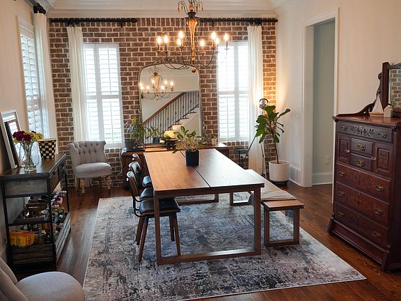 Situated in the River Island Subdivision, this home has access to walking trails, playgrounds, a boat house and a neighborhood pool, all while providing panoramic views of the Savannah River. Step inside to hardwood floors, and a large dining room with a brick accent wall. The kitchen is well appointed with stainless appliances, granite counter tops, and a herringbone pattern back splash. The living large living room features beautiful built-ins, vaulted ceilings, and exposed beams. The master bedroom has a spacious bath and massive wrap-around closet. This home offers great outdoor entertainment space with a large covered porch with stained ceilings and masonry brick fireplace. Three additional bedrooms are on the second level, each of which has its own private bathroom. The rear entry garage has its own alley style access, and additional parking situated to the side. Come live your best life in River Island. Access to top public schools!