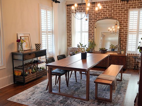 Masonry brick fireplaceBeautiful built-insExposed beamsStained ceilingsHardwood floorsAdditional parkingLarge dining room