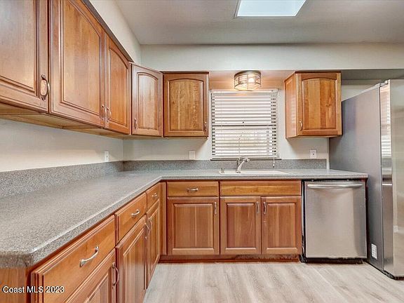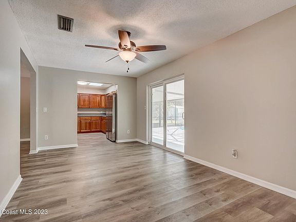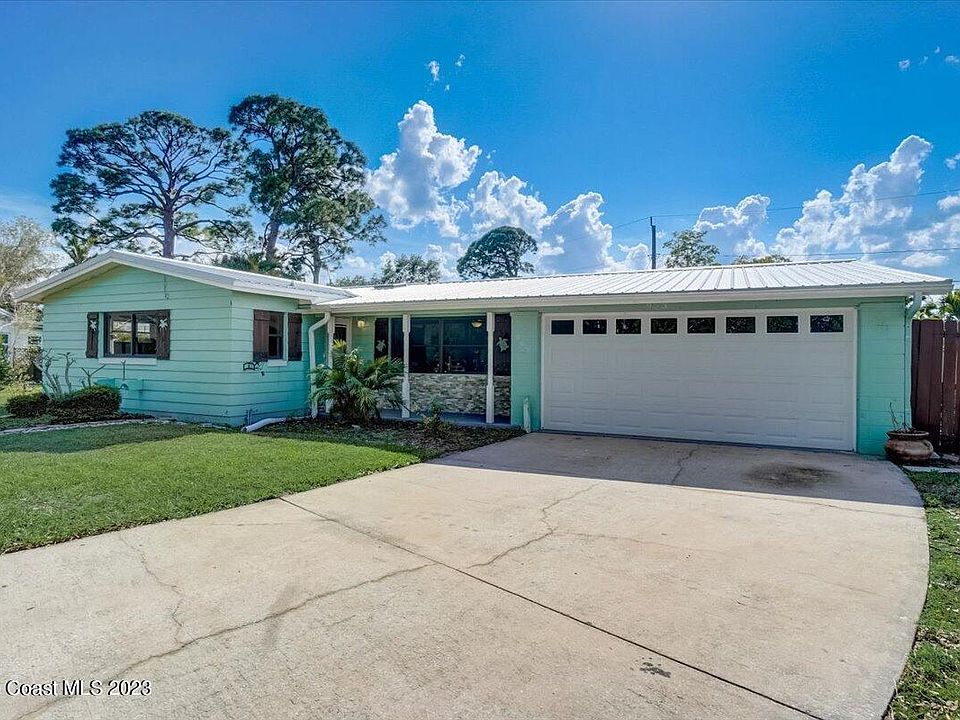 Move in ready 3 bedroom, 2 bath, 2 car garage POOL home! Freshly painted interior, New flooring, updated kitchen and baths, all that is left is for you to move in. Upgraded luxury vinyl plank floors throughout the main living areas make the home feel bright and open. The kitchen features cherry stained cabinets, Corian countertops and stainless steel appliances. Come enjoy sitting on your patio overlooking the resurfaced pool and fenced backyard. water heater 2019. Metal roof 2019. Salt water pool equipment 2019. Conveniently located near Kennedy Space Center, schools, parks, shopping, restaurants, easy interstate 95 access & Space Coast Beaches. today.