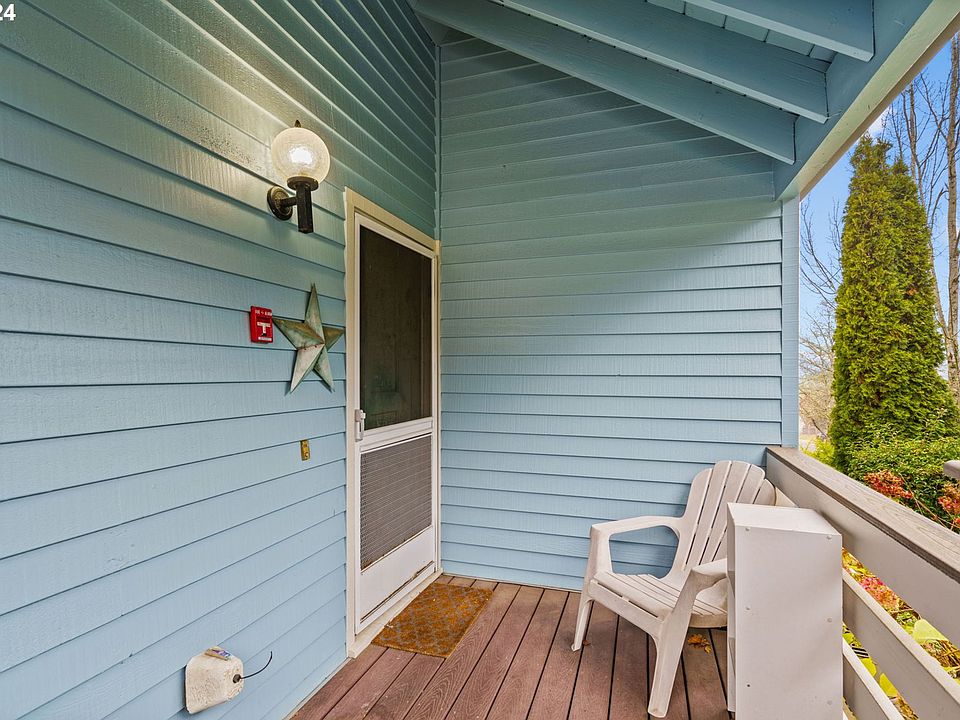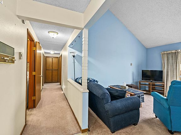 2 bedroom condo in great location near river, trails, Autzen Stadium, eateries, gym and bus stop! Vaulted living room offers a corner fireplace and access to a good sized deck for outdoor enjoyment. Ductless heat pump!! Efficient kitchen with built in stainless steel dishwasher and microwave, refrigerator stays and a nice picture window above the sink. Primary bedroom has a walk in closet, separate laundry room with room for full sized washer/dryer and storage. Additionally there is a large storage closet in the hallway. This is a single level unit but there are stairs to access the home. Small community with easy access to the University and down town. Pets are allowed and each unit has two parking spaces, one is covered. Unit also comes with an 8X9 storage unit on the property