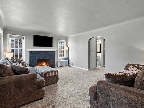 Be prepared to be impressed w/the coved ceiling & gas FP in the living rm. Beauty of rich looking maple cabinets & new SS appliances in the step-saving kitchen. Wall-hung TV ready for viewing in the generous primary bedroom & fresh new carpet in both bedrooms. Newer vanity & tile walls in the cozy bathroom. Basement (w/2 painted brick walls) sporting a rec rm w/a bar for entertaining or just hanging out. New composite deck & privacy fence are just a small part of the spacious yard that would welcome a fire pit & play time year-round. Updated windows, trim, epoxy front porch, new concrete walkway. Available for immediate occupancy. Your search will be over once you stop & see this adorable Bungalow. Seller to review offers 12/2/25 but reserves right to accept sooner. Showings begin 11/28/25