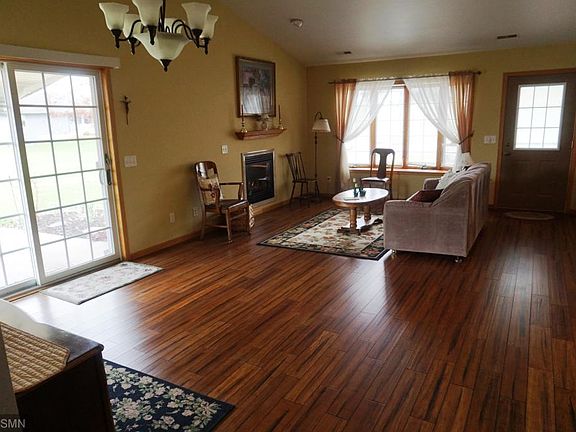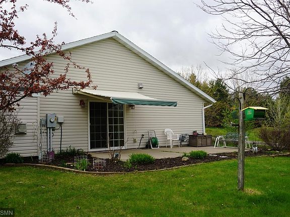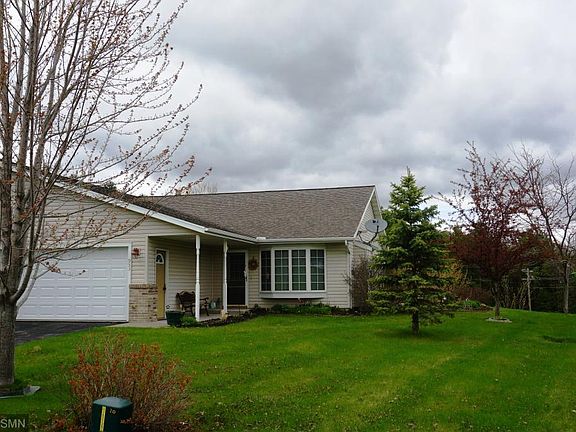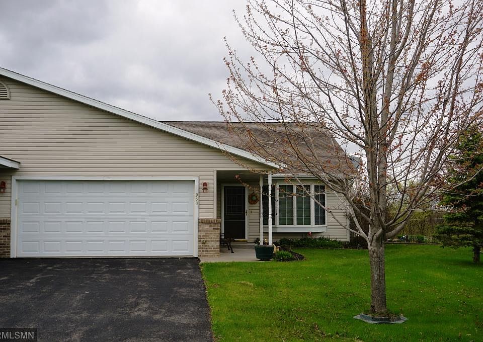 Move-right into this main floor living 2BR/2BA twin home with finished and insulated 2 Car attached garage on the edge of town and country! Newer quality built home has great curb appeal and nearly a third of an acre lot! Vaulted open concept with new laminate wood floors in the living/dining rooms; gas fireplace and bay window highlight the living room. Kitchen provides plenty of Oak cabinetry with roll outs, lazy susan, pantry, breakfast bar and includes appliances. Both nicely sized bedrooms are carpeted; the main bedroom features a 5x7 walk-in closet. Full bath with double sink vanity plus a half bath with included washer, dryer and washtub sink. Side patio offers a remote awning and nice wooded views across the road. Andersen windows and slider; forced air natural gas furnace; central air; water softener; 100 AMP breakers. No association fees. Sold As-Is. Affordable and ready for you!