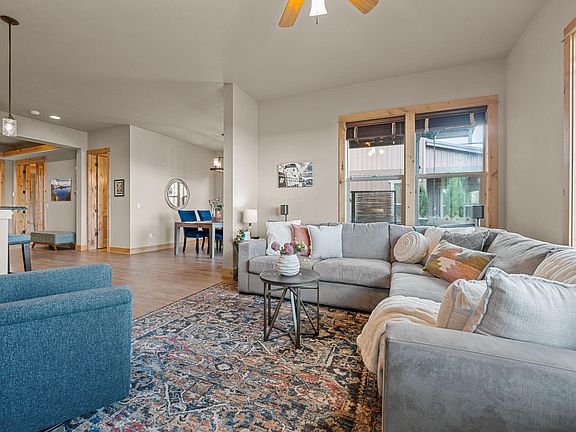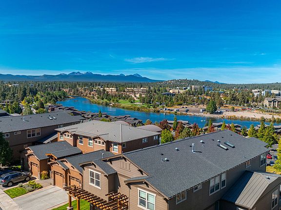 Nestled just steps from the iconic Old Mill, this home has sweeping panoramic views of the Cascade Mountains and the Deschutes River. Expansive windows flood the open-concept living area with natural light, framing the stunning scenery. The gourmet kitchen is complete w/ gas range, knotty pine cabinetry, generous pantry, and an inviting eat-in island. Step outside onto the heated deck, where you can relax and savor sunsets over the mountains. A main-floor bedroom and full bath offer ideal flexibility for guests or home office. Upstairs, discover a versatile loft, perfect for a media room or home gym. The primary suite boasts incredible views, a private balcony, 5-piece en-suite bath w/ soaking spa tub, and spacious walk-in closet. Two large bedrooms and a full bath complete the upper level. The garage has a 240V outlet for your EV. Imagine enjoying a concert at the amphitheater from the comfort of your deck or watching tubers float down the river. Your slice of paradise awaits!