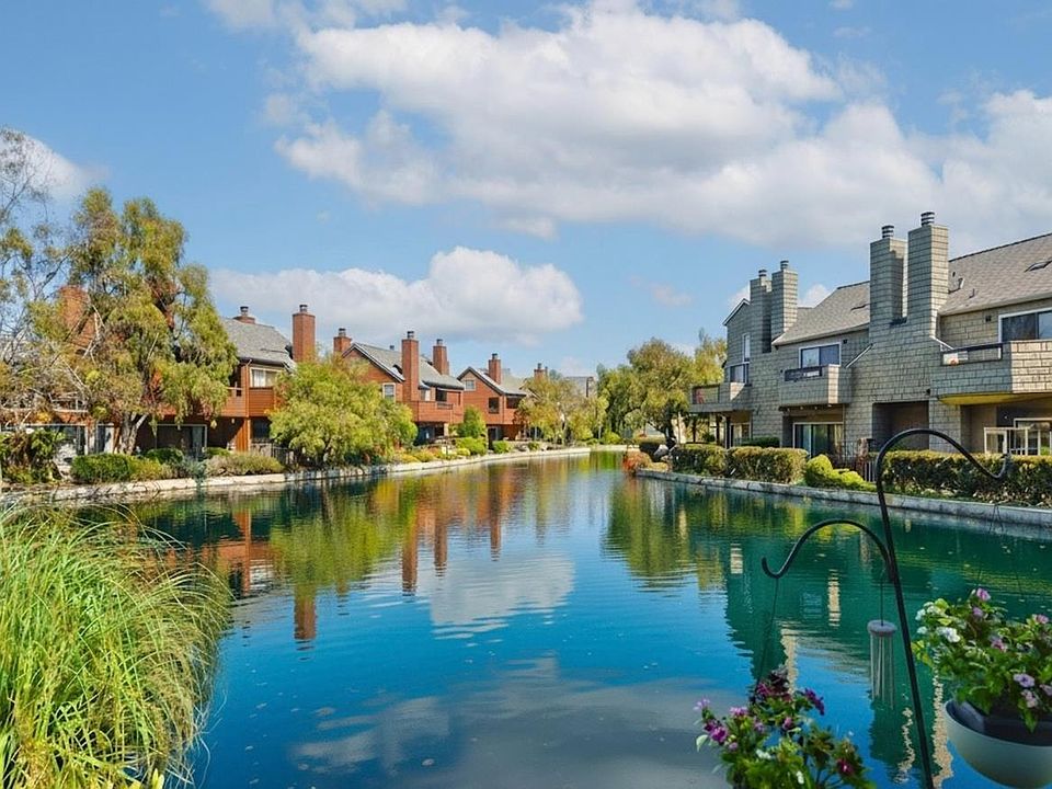 Exquisite waterfront loft in Harbortown offers the perfect blend of luxury, serenity, and convenience. Enjoy sweeping lagoon views from the living room, dining area, kitchen, and open loft above. The soaring vaulted ceilings and skylights fill the home with natural light, creating an airy, peaceful retreat. The gourmet kitchen features granite countertops and premium cabinetry. The spacious primary suite includes a private balcony with fountain view, walk-in closet, and spa-like bath with soaking tub. The versatile loft area is ideal for a home office, gym, or guest room. In-unit washer/dryer. Resort-style amenities include indoor/outdoor pools, spa, sauna, and tennis courts. Easy access to Hwy 101, shops, and top-rated Aragon High.