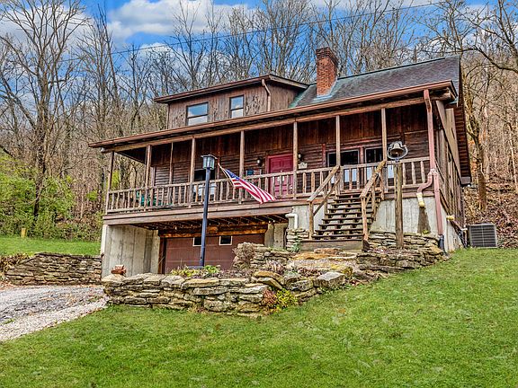Welcome to this unique log cabin along the scenic Ohio River on over 3 acres with direct access to the river in serene Rabbit Hash and within walking distance to the historic Rabbit Hash General Store. With tons of natural light and surrounded by nature, get away from it all in this custom home with 2 beds and 2 full baths and panoramic views of the river. Sit on the 370 sq ft front porch and enjoy the quiet views or come inside and entertain in the massive great room with wood burning fireplace and vaulted ceilings. First floor bedroom, full bath, and laundry. Upstairs you have another large bedroom with en suite bath, walk in closet and loft overlooking the great room. Full basement with walkout to the front, work bench and 2 car garage. With 150 ft of river frontage, walk down to the river and launch your boat right in or enjoy some fishing. Schedule your tour today and fall in love!