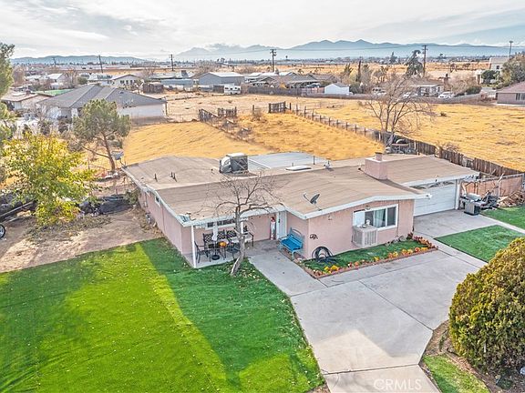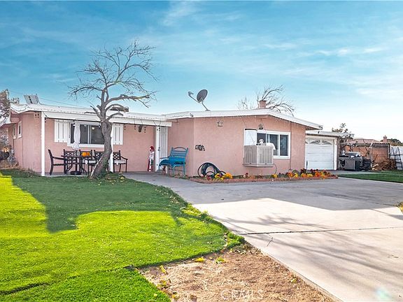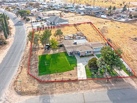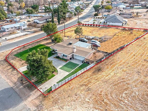 This delightful entry-level home, is situated on nearly three-quarters of an acre lot, that sits in a quiet cul-de-sac. It's conveniently close to schools, shops, and essential eating. This thoughtfully designed two-bedroom, two-bathroom residence exudes style and charm. Upon entering, you'll find a spacious family room, a well-appointed kitchen that is enhanced by a skylight, and a large primary suite that provides direct access to the exterior. The generously sized guest bedroom ensures ample space for visitors. Additionally, the home boasts a sizable enclosed patio, ideal for enjoying windy desert days in comfort. This property includes an attached two-car garage and a fully fenced in lot, which is divided into two sections for added versatility. The circular driveway enhances both the convenience and added appeal of this home. Located in the desirable area of Hesperia, this property offers great value in its price range. Come schedule a visit today before it's gone.