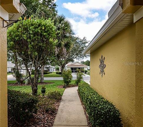 PREMIUM GOLF COURSE FRONTAGE LOT WITH A BRAND NEW ROOF! This spacious Kingston model home is located in the much sought after gated 55+ golf Community of On Top of the World. To fully appreciate the residence, make sure you view the 3D Virtual tour. Home features Oak hardwood flooring throughout main living areas, tile in foyer, kitchen, and baths, custom Plantation shutters on all windows, gas fireplace with built-ins in Family Room, corner garden tub in Master bath, newer HVAC (2015), Roof (2020), escutcheon plates above ceiling fans and dining chandelier, enclosed Lanai, utility sink, water softener, solar film on windows, and more. Lawn care, basic cable, gym, exercise classes, 24-hour guarded gate, exterior painting, and more are included in your monthly amenities fee. Enter the tiled foyer to view the oversize Living/Dining Room with hardwood floors. Just right of the Foyer, French doors access the Den/Office. The Guest Bedroom and Guest Bath are located off a private hallway on the right side of the home. On the left side of the home is the large eat-in Kitchen that features plenty of cabinet storage, lots of counter space, a Breakfast Nook, large pantry, broom closet, and an eat-at counter. The Family Room is located beyond the kitchen at the back left of the home. The Family Room features a gas fireplace with lighted built-in bookshelves and storage. The Master Bedroom Suite is located in the back right of the home and features a deep walk-in closet, and large Master Bath with step-in shower, corner soaking tub, block windows for privacy and additional light, and separate toilet area. Enclosed Lanai is located at the back of the home and offers expansive views of the fairway.