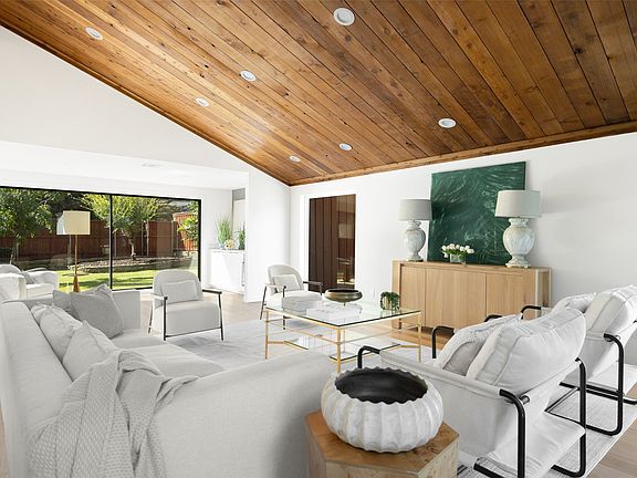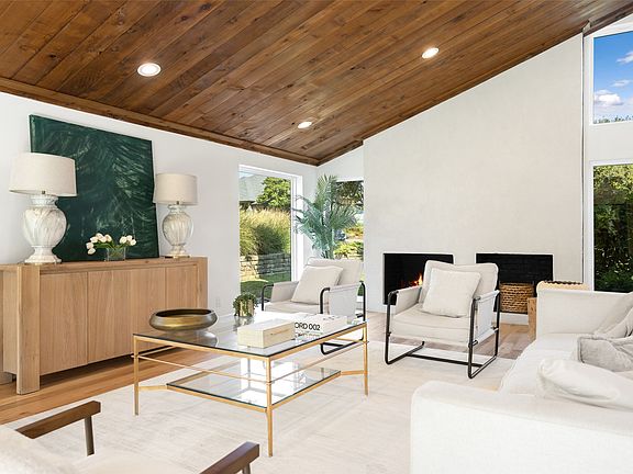Double fireplaceMid century style anglesOversized backyardLuxury ss appliancesOak wood floorsFormal dining roomWalls of glass