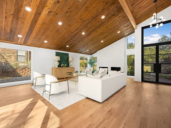 Modern Masterpiece in Merriman Park designed by famed architect Adriana Meyer. Cool Rare Gem of a home on a Great Lot. Walls of glass, mid century style angles, double fireplace, oak wood floors, wood ceilings, custom lighting, and more. Open concept chefs kitchen with luxury SS appliances, island, stain grade level wood custom cabinets, pantry, gas range, stone counters and custom tile. Flows into the living room which brings the outside in.Wet bar in the alcove situated on the outside of the living room. Make ur way past the Custom Glass and Steel front door to the formal dining room. The primary suite, located on the main floor, offers a luxurious retreat with a spacious layout, custom walk-in closet, and spa-inspired en suite bathroom featuring a freestanding soaking tub, a beautifully tiled walk-in shower, and abundant storage. Separate Office is down and another bedroom. Upstairs has two more bedrooms and a game room space. From the downstairs living walk out to the oversized backyard with great landscaping and privacy. Part of Merriman Park schools and close to lake highlands shopping + Dining. Come see it before its gone!