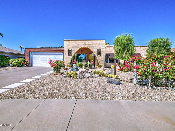 Welcome to this vibrant gem in Sun City's sought-after 55+ community! This home perfectly blends colorful character with classic charm, creating a space that feels both fun and timeless. Inside, you'll love the bright and inviting living areas, newly updated bathrooms, and a spacious 500 sqft Arizona room that's ideal for entertaining, relaxing, or simply enjoying the sunshine year-round.