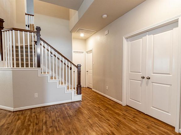 Rare 1 1/2 story, 4 bedroom, 2 1/2 bath home in beautiful Meridiana! 4th bedroom has French Doors and could also be an ideal office. Engineered hardwood floors in entry and main living area, granite countertops, tile backsplash and a gas cooktop adorn very large kitchen with island. The tile work in the primary en-suite is gorgeous. Large primary bedroom with views to the backyard. The extra large (22 x 22) upstairs bonus/game room is filled with possibilities. There is a whole house water softener system. Back yard features a covered patio and tons of room for outdoor activities. Schedule your private tour today!