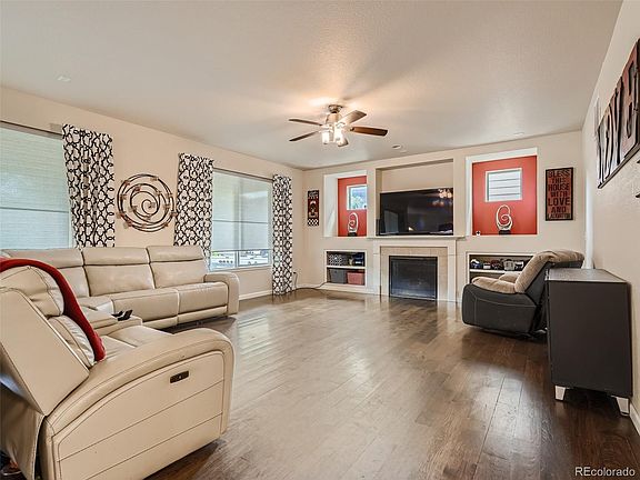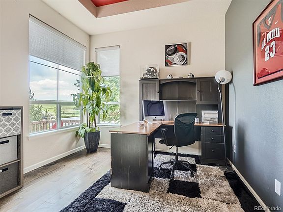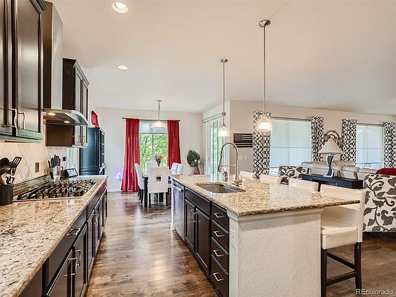 Massive Price Drop! Step into this beautiful home in sought after Candelas neighborhood with plenty of upgrades. Featuring hardwood floors, formal dining, main floor office, and a large granite kitchen island. Custom window coverings, and a tankless water heater to add some more. Enjoy the quiet backyard with a turf, low maintenance lawn, prewired surround sound in living room and back patio, plus a gas line to connect your grill for easy outdoor grilling. Primary bedroom on second floor with walk in closet off of laundry room. 2 more bedrooms and a loft area for an added bonus. Basement is finished with a bedroom, 3/4 bath, and a bonus flex space for your extra storage or work out room. A large great room is just what you need for relaxing. Home sits across from open space and pond. Check out the amazing views of the foothills. Don't miss your chance to make this house your home!
